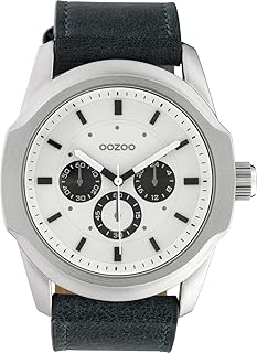 Herrenuhr Chrono Look mit Lederband 46 MM Weiß/Blau C10317