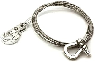 Integy RC Model Hop-ups C28414SILVER Realistic 1/10 Scale Steel Tow Cable, D-Ring & Tow Hooks for Off-Road Crawler