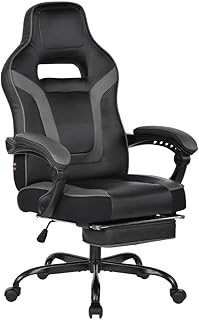 Healgen Gaming-Stuhl Bürostühl mit Fußstütze,Computerstuhl Racing Gamer Stuhl PU Ledersessel Drehbarer Ergonomic Office-Stuhl mit hoher Rückenlehne,Schwarz Grau
