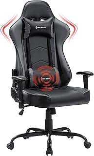 Boomersun Gaming Stuhl Racing Stuhl, Ergonomischer Bürostuhl Stuhl, Drehstuhl Racer Gamer Stuhl PC Stuhl, mit Wippfunktion, Einstellbarer Neigungswinkel (Schwarz, Ohne LED-Licht)