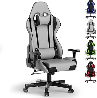 WOLTU BS98gr Gaming Stuhl Racing Stuhl Ergonomischer Stuhl Schreibtischstuhl Höhenverstellbarer Gamer Stuhl Drehstuhl mit Fußstütze und Wippfunktion Bürostuhl, Stoffbezug, Grau