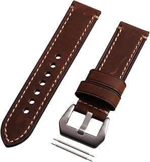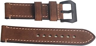 Uhrenarmband aus echtem Leder, 24 mm Breite, mit schwarzer Schnalle, Braun