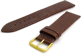 Herren-Uhrenarmband aus echtem Leder, Eidechsenmaserung, 18 mm, Braun mit vergoldeter (goldfarbener) Schnalle, 617 g/18
