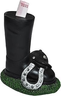 alles-meine.de GmbH XL Spardose Reitstiefel mit Reithelm / Hufeisen - stabile Sparbüchse aus Kunstharz mit Schlüssel - Sparschwein lustig witzig Pferd Pferde - Reisekasse Urlaub ..