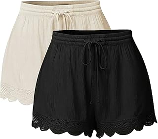 MOMONIHAO 2 PCS Damen Shorts Sommer Kurze Hose Lose Spitze Hot Pants Tunnelzug Elastische Taille Solide Sporthose
