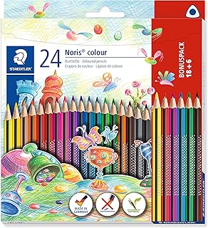 STAEDTLER 187 C12P1 Noris Colour Colouring Pencils (Increased Break-Resistance, Triangular Shape, Attractive Design, Ergonomic Soft Surface, Wopex Material, Set of 16 Brilliant Pens in Cardboard Case) : Amazon.co.uk: Stationery & Office Supplies Attractive Noris stripe and stars design; Available in 36 colours; Wood content from PEFC-certified, sustainably managed forests; Sharpener recommendation: Noris double hole tub sharpeners 512 002 and 512 128 for ideal sharpening results; Article number. 187 G288