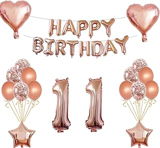 Oumezon 11 Geburtstag Mädchen Dekoration Rose Gold, 11. Geburtstag deko für Mädchen Jungen Happy Birthday Girlande Banner Folienballon Konfetti Luftballons Deko Geburtstag Party Anzahl Ballons