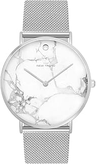 Armbanduhr Silber Weiss für Damen & Herren, Marmor-Style mit Textil- Stoff- Nylon- NATO-Armband oder Edelstahl-Metallarmband Ø 38 MM