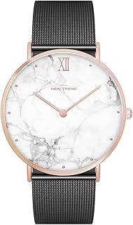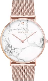 Armbanduhr Rosegold Weiss für Damen & Herren, Marmor-Style mit Textil- Stoff- Nylon- NATO-Armband oder Edelstahl-Metallarmband Ø 38 MM